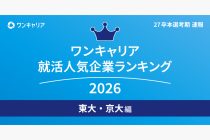「ワンキャリア 就活人気企業ランキング【東大・京大編】(27卒本選考期速報)」を発表