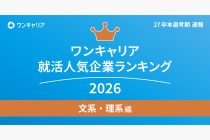 「ワンキャリア 就活人気企業ランキング【文系・理系編】(27卒本選考期速報)」を発表