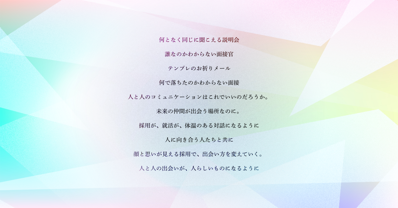 そこで、「人生の大きな決断となる”ファーストキャリア”での選択を、就活生にとっても、企業にとっても幸せなものにしてほしい」という想いから、「就活を対話にするプロジェクト」を立ち上げました。
