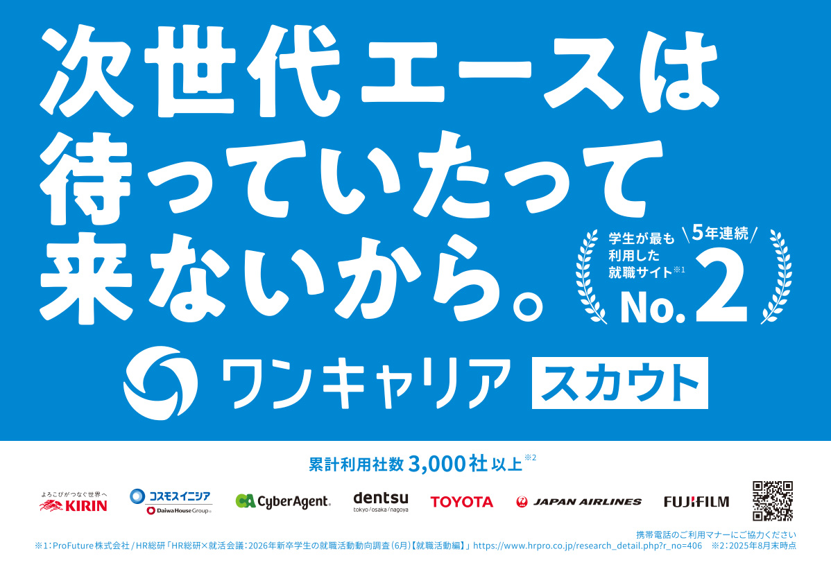 株式会社ワンキャリア(本社:東京都渋谷区、代表取締役社長 執行役員CEO:宮下 尚之、以下「ワンキャリア」)は、企業・団体を対象に、ダイレクトリクルーティングサービスであるワンキャリアのスカウトサービスの認知拡大を目的とした関西・東海エリアの各鉄道主要駅構内や電車内での交通広告キャンペーンを、2025年11月1日(土)から開始しました。