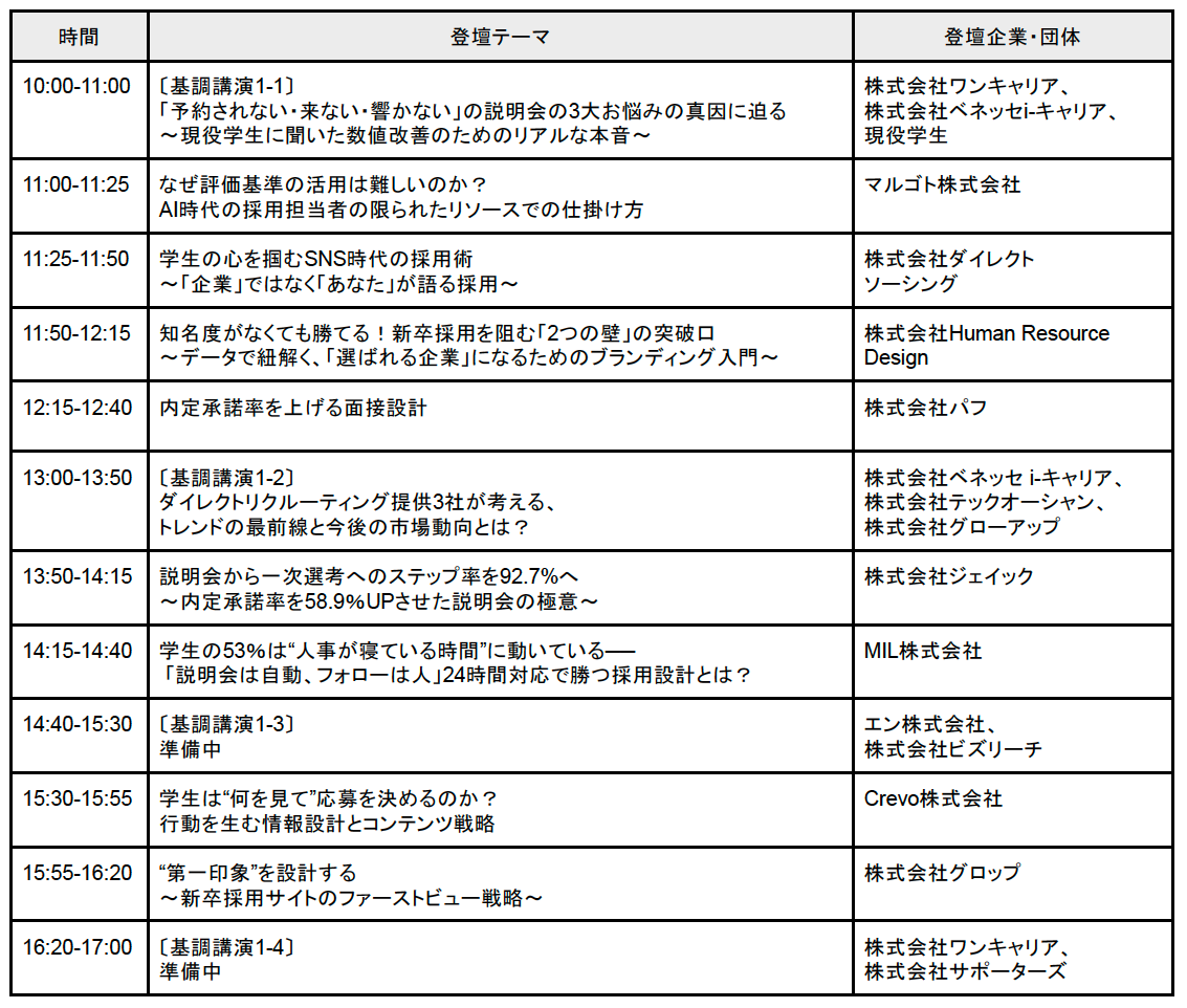 参加対象 :企業・団体の人事・採用担当者