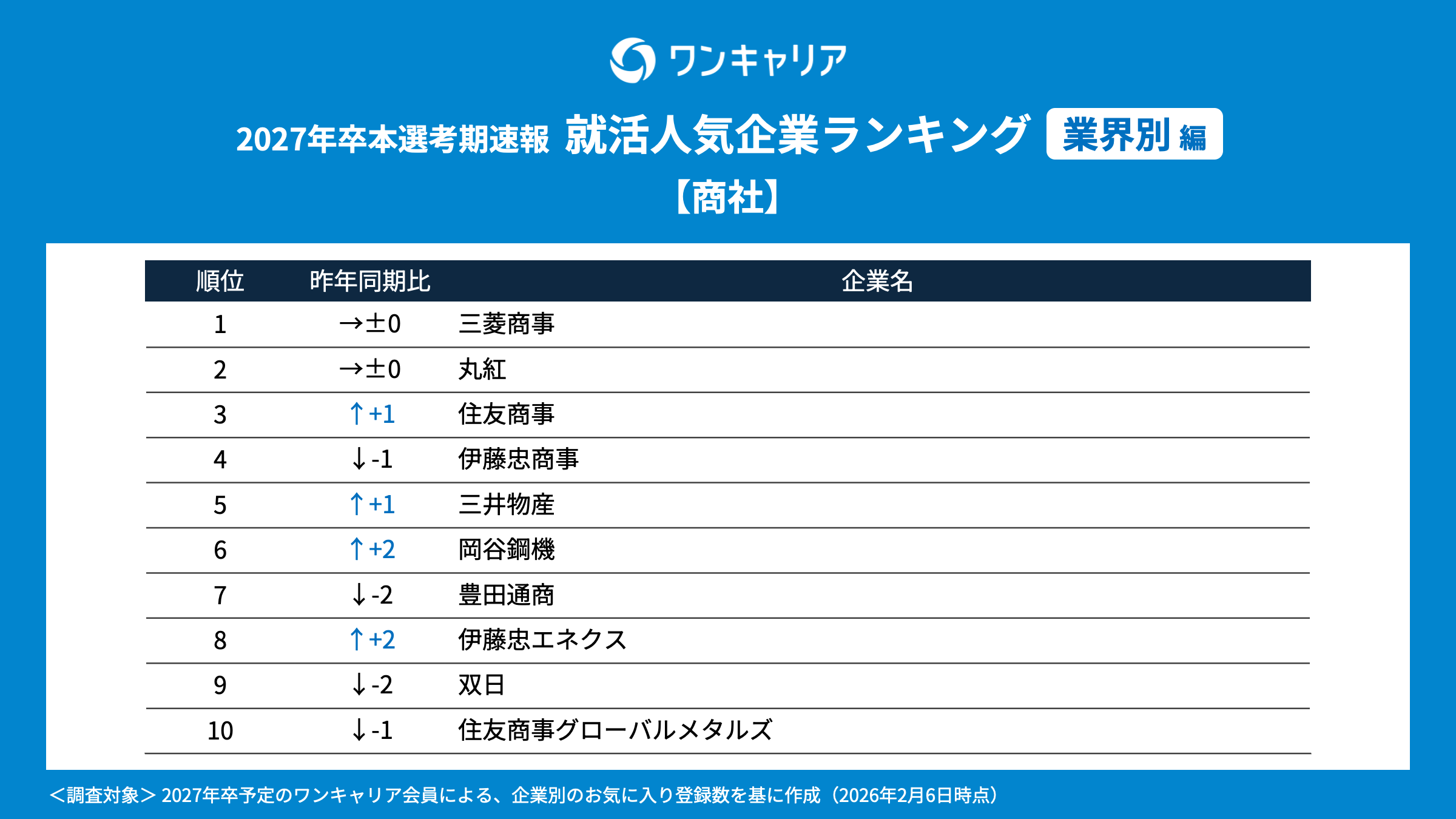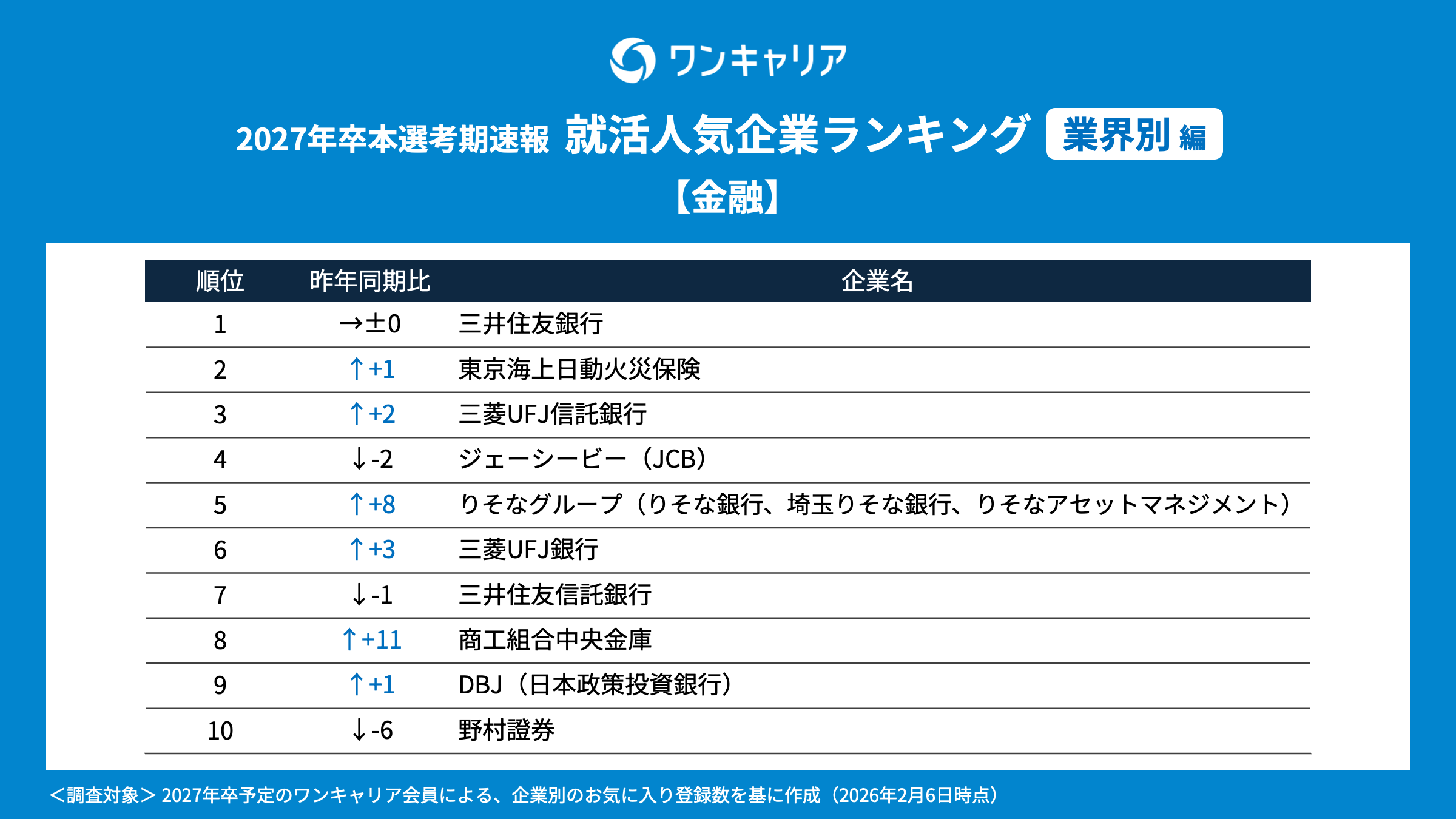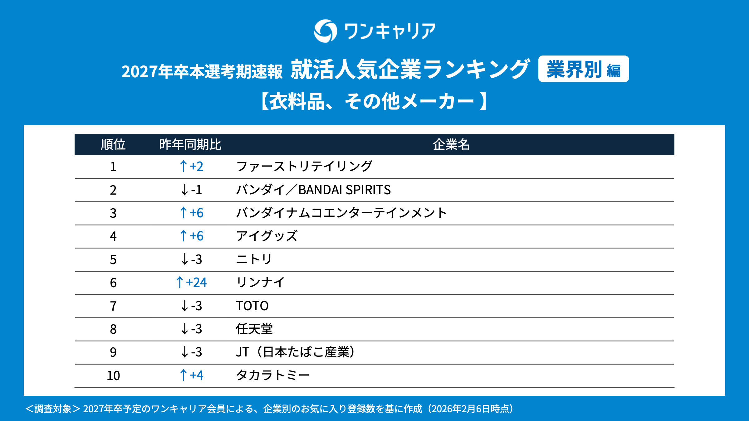 調査名 : ワンキャリア 就活人気企業ランキング【業界別編】(27卒本選考期速報)